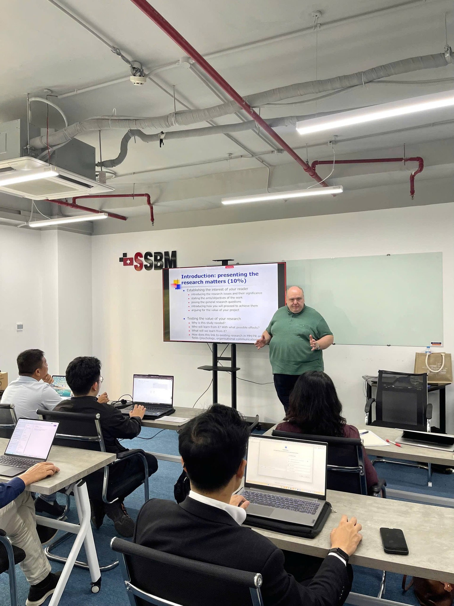 Một điểm nhấn của chuỗi hội thảo diễn ra hôm nay, khi chúng tôi vinh dự chào đón GS. Matthew Hibberd, Trưởng khoa Truyền thông và Nghiên cứu Truyền thông tại Università della Svizzera italiana. Trong buổi chia sẻ, ông hào phóng trình bày logic cấu trúc luận án tiến sĩ, các nguyên tắc viết phản biện, cùng những lời khuyên quý giá đúc kết từ nhiều năm hướng dẫn và phản biện nghiên cứu tiến sĩ.
