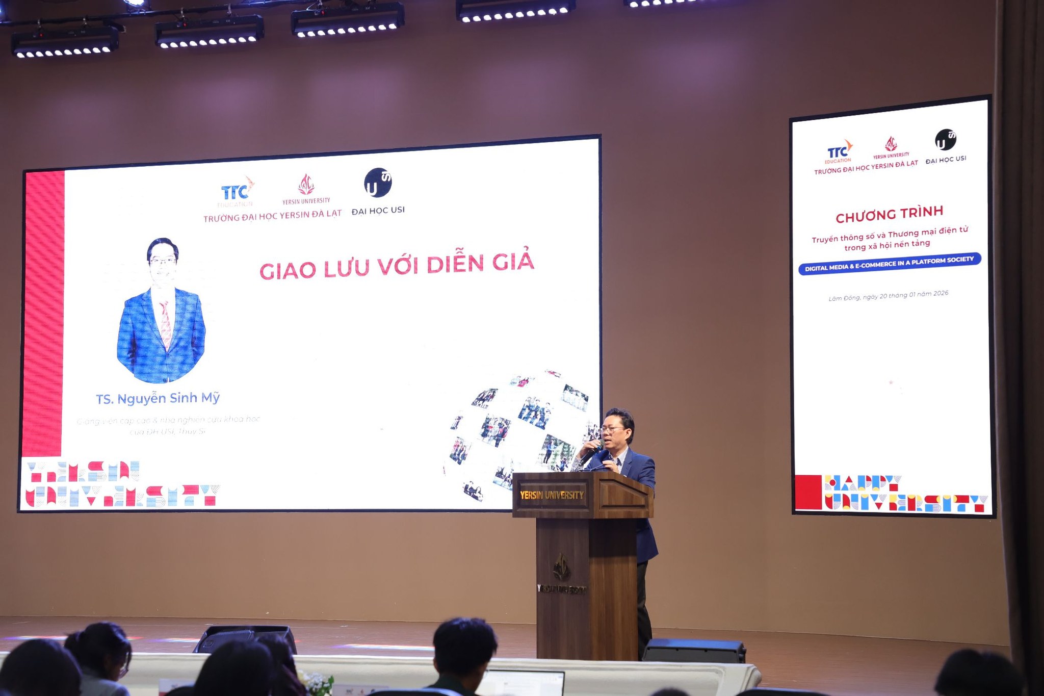 Một trong những điểm ấn tượng nhất của buổi chia sẻ sáng 20/01/2026 tại Đại học Yersin Đà Lạt chính là phần hỏi – đáp vô cùng sôi nổi giữa các bạn sinh viên và hai diễn giả.